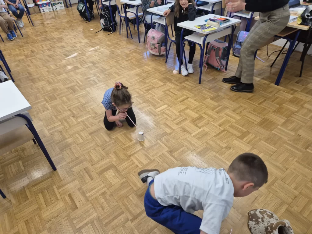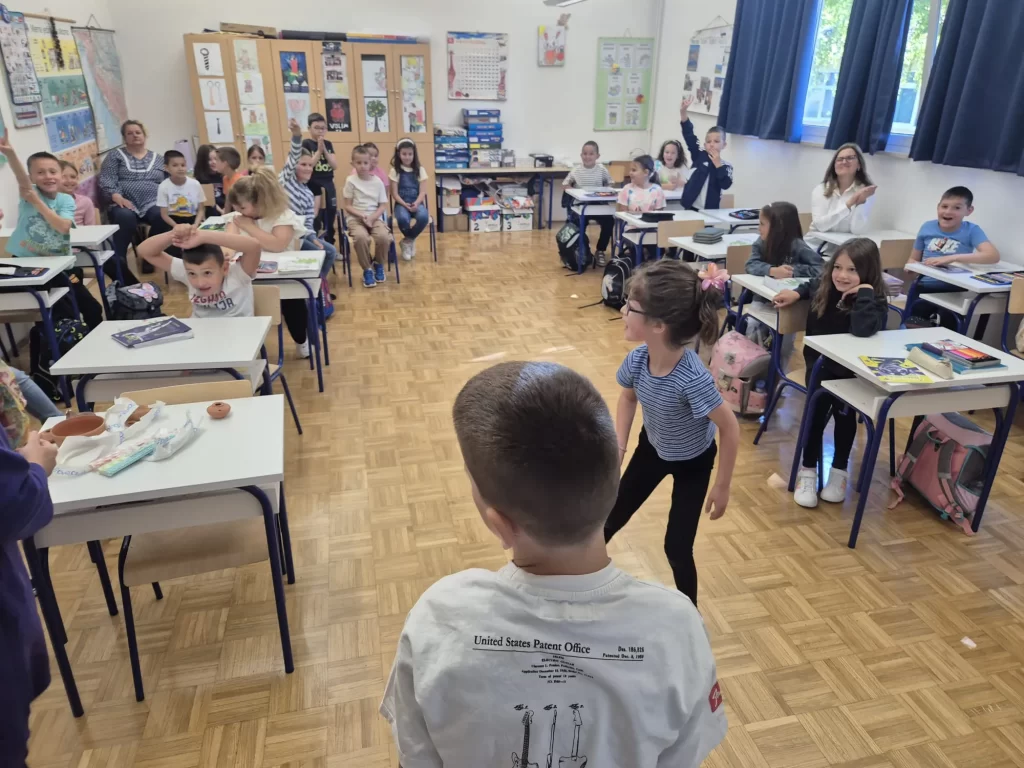 Nastavljajući dobre prakse prethodnih ravnateljica, v. d. ravnatelja Muzeja Ljubo Jermelić, u suradnji s Odsjekom za arheologiju, Filozofskog fakulteta Sveučilišta u Zagrebu, prof. dr. sc. Zrinkom Šimić-Kanaet te prof. dr. sc. Vinkom Matijević, posjetili su 15. i 16. svibnja OŠ Trilj, PŠ Vedrine, PŠ Košute, PŠ Grab i PŠ Velić.