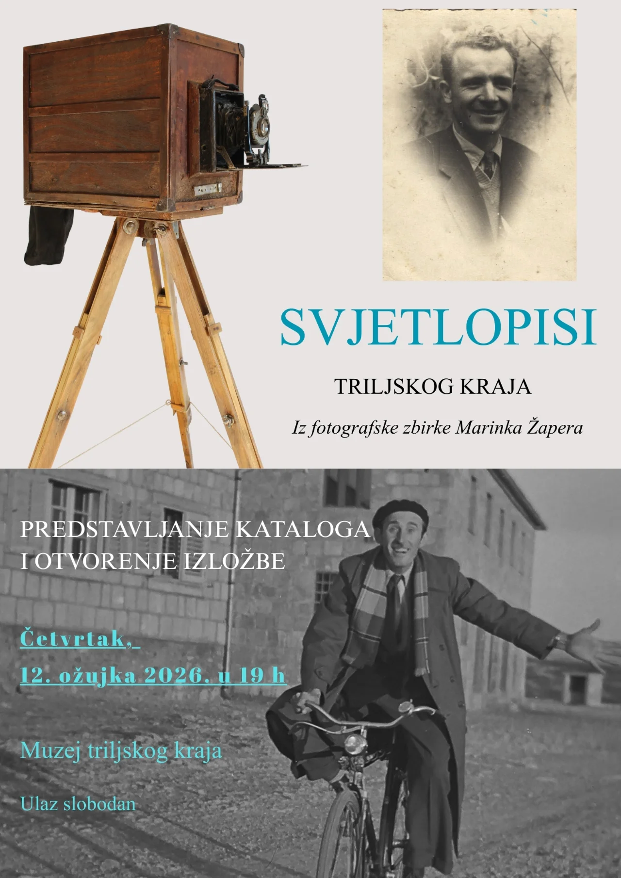 Muzej triljskog kraja ima čast pozvati Vas na predstavljanje kataloga i otvorenje izložbe „Svjetlopisi triljskog kraja“, posvećene fotografskoj ostavštini Martina Žapera, autora koji je desetljećima bilježio život, ljude i svakodnevicu našega kraja.